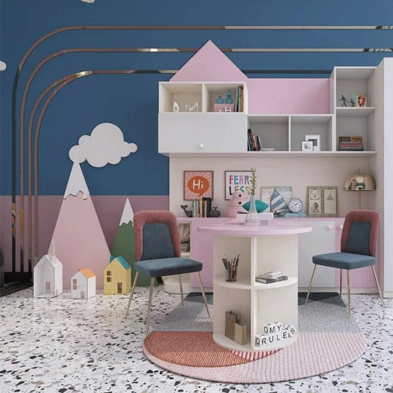 将儿童空间演绎出了温柔甜蜜,大范围的使用(yòng)也丝毫不显锐利张扬,